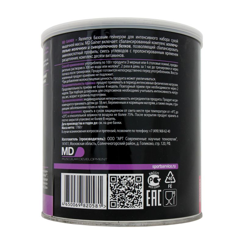 MD Gainer – базовый гейнер для интенсивного набора сухой мышечной массы. MD Gainer включает: